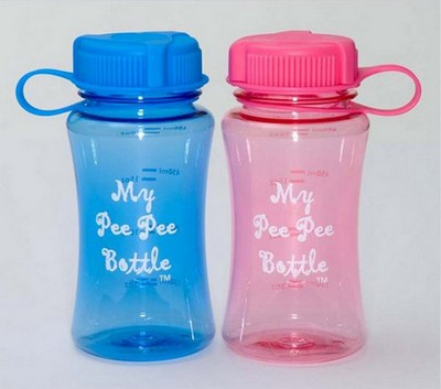 Il secondo, strano, oggetto che vi presentiamo questa settimana è invece dedicato ai bambini, ma non pensiate si tratti di giochi o passatempi per evitare i capricci durante i lunghi viaggi in auto. I lunghi viaggi c’entrano, ma il gadget in questione non è orientato all’aspetto ludico, bensì a quello fisiologico di tutti i bambini (bottiglina blu) e di tutte le bambine (bottiglina rosa), trattasi infatti di una comodissima (?) bottiglina per la pipì.