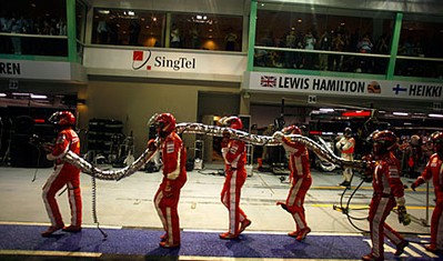 Fernando Alonso a denti stretti ottiene la pole position sul circuito cittadino notturno di Singapore.