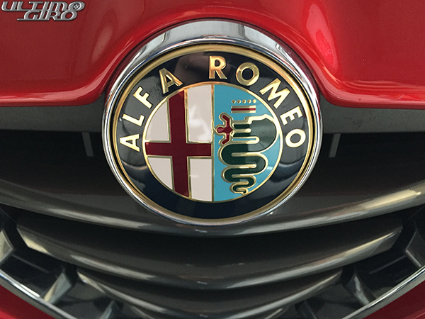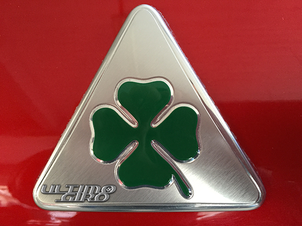Chiude il tutto un porta fortuna: il Quadrifoglio Verde su fondo bianco che da sempre denota l’animo sportivo Alfa Romeo.