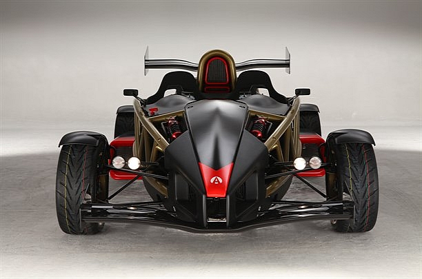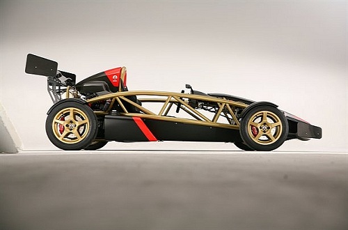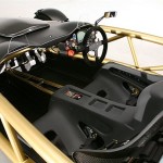 Ariel Atom V8 (stradale o trackaholic che sia) offre, al fortunato proprietario o all’avventuroso pilota, pneumatici in lega da 16 pollici sull’assale posteriore e da 15 pollici su quello anteriore, trasmissione automatico-sequenziale a sei rapporti, gommatura Toyo, impianto freni Alcons, telaio a traliccio a vista, in una tonalità aurea (riproposta sui cerchi in lega), fibra di carbonio per la carrozzeria – poca –, strumentazione digitale e paddles del cambio al volante.