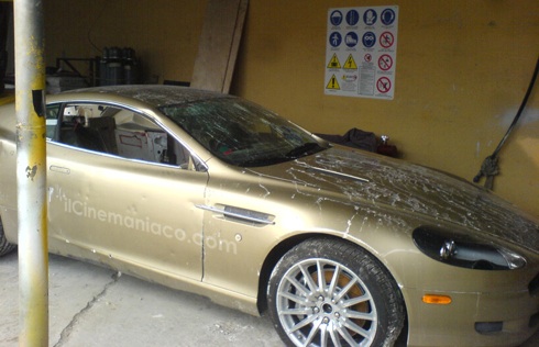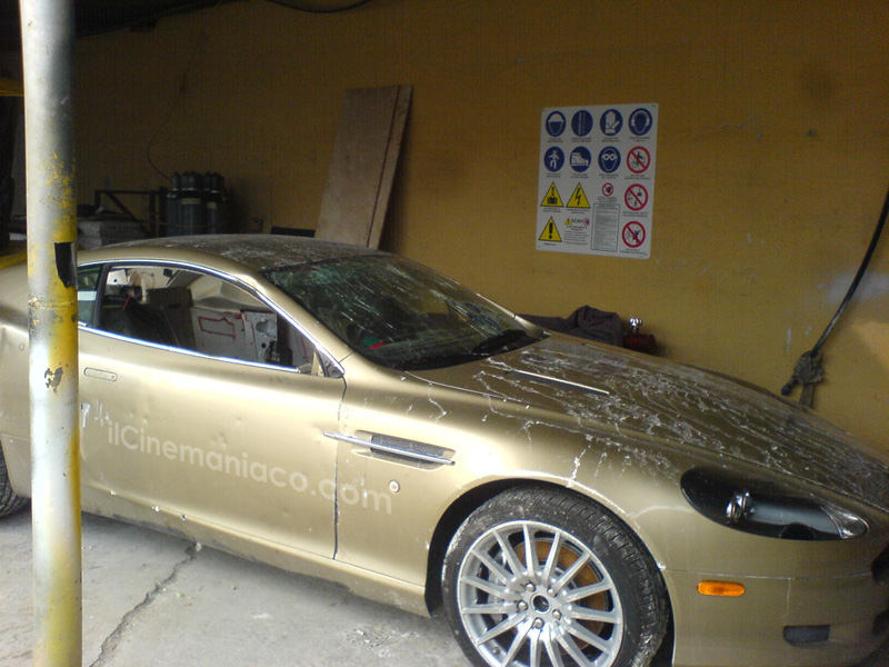 Infine vi mettiamo di fronte ad uno spettacolo che nessuno di noi, appassionati di motori, avrebbe mai voluto vedere in vita sua. Una DBS completamente distrutta, divenuta addirittura protagonista su alcuni giornali locali perché quasi finita in un dirupo durante la ripresa di una scena d’inseguimento (poi andata a buon fine). Poverina!