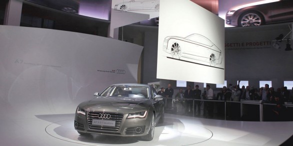 Audi A7 Sportback 2011, la nuova vettura che il costruttore di Ingolstadt sta per immergere nel mercato, in quel contesto battagliero di automobili di lusso che ancora una volta riunisce il compatto terzetto Premium – Audi + Bmw + Mercedes –, è stata presentata nella serata di ieri, a Monaco (una beffa ai bavaresi dell’Elica?), unitamente ad una cascata di dettagli approfonditi.