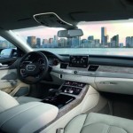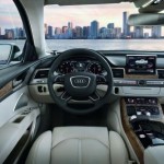 Lunga 5.137 mm, larga 1.949 mm ed alta 1.460 mm, la nuova Audi A8 si presenta con un look molto simile a quello della ‘cuginetta’ Audi A4, con un corpo in alluminio che le permette di essere relativamente leggera.
