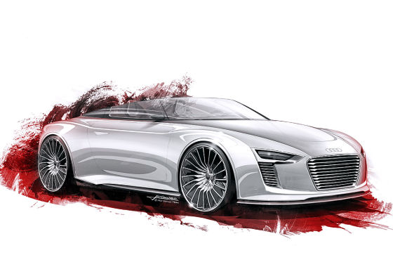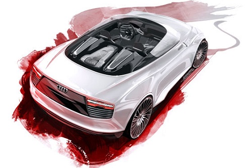 Giuro di essere sempre più confuso e spaesato, di fronte alle numerosissime informazioni che provengono dal fronte teutonico e, in special modo, da quello di Ingolstadt, quartier generale della casa automobilistica Audi, in merito al Salone di Parigi del prossimo ottobre. Le più recenti indiscrezioni sono rappresentate da…alcuni bozzetti, che anticipano l’aspetto di Audi E-Tron Spyder, concept car elettrica che, pare, il costruttore tedesco ha pronta, nel taschino, per sorprendere i partecipanti alla kermesse francese.