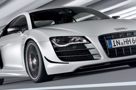 La casa tedesca Audi continua a sprigionare nuovi prodotti, e mette sul mercato oltre alla R8 2011, anche la GT con meno peso e più cavalli. Infatti, l’idea è stata quella di provare un 5.2 V10 FSI che eroga 560 CV a 8.700 giri con una coppia massima di 540 Nm, ed è più leggera di circa 100 kg rispetto alla R8 coupé standard. In questo modo la vettura sprigiona più potenza, ed è in grado di conseguire un’accelerazione da 0 a 100 km in 3,6 secondi. I numeri ci dicono che sono 333 al momento le vetture disponibili al prezzo base di 188500 euro, un modo giusto secondo la casa di Ingolstadt di fare la concorrenza ad altre splendidi esemplari come la Porsche, Lamborghini Aston Martin etc, cercando di limare molto il prezzo.