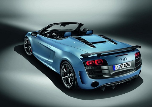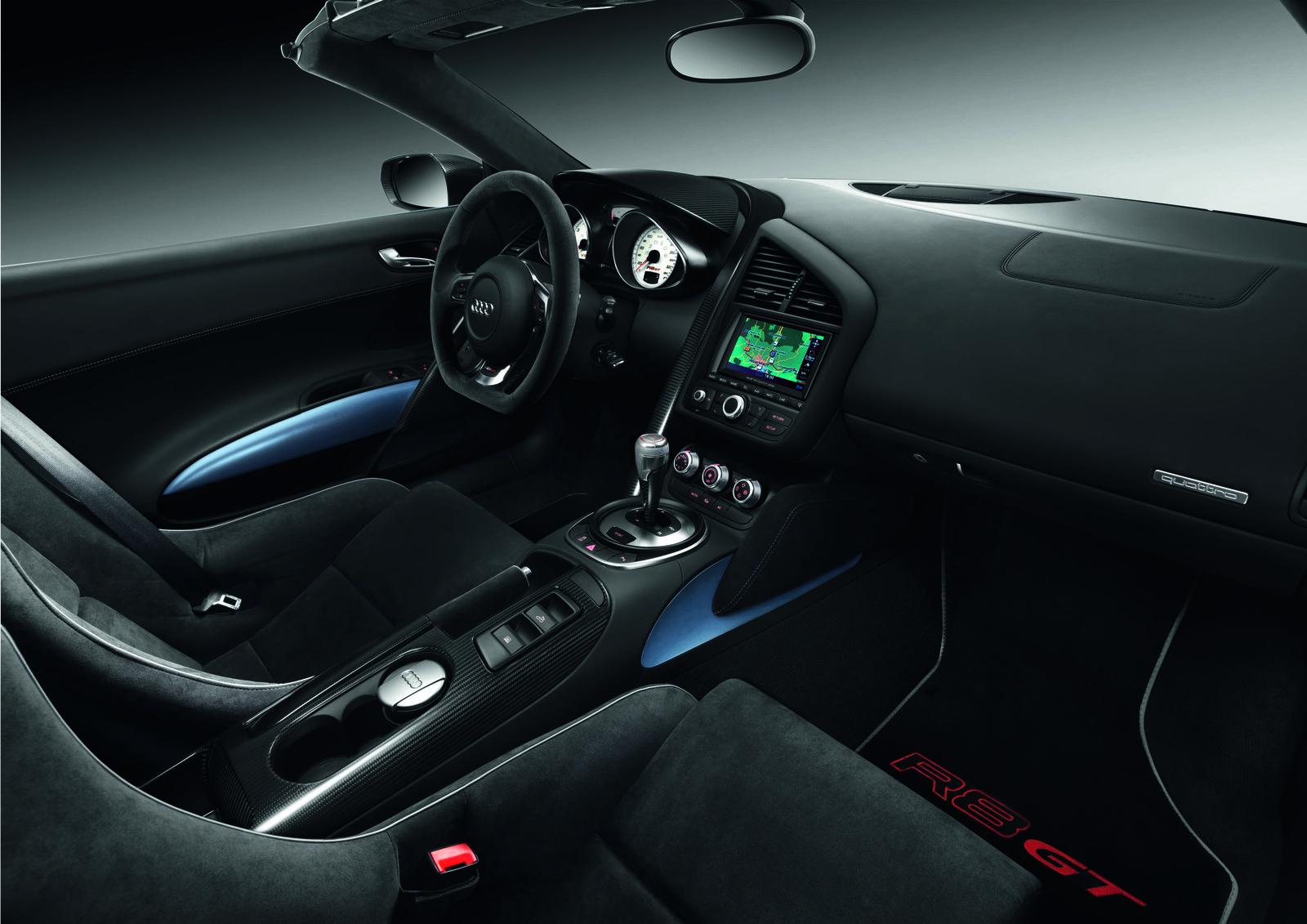 Tutti questi interventi hanno abbassato il peso complessivo della sportiva Audi R8 Spyder a 1.640 chilogrammi, che equivalgono ad ottantacinque chilogrammi in meno rispetto a R8 Spyder V10 e a venti chilogrammi in meno rispetto a R8 Spyder V8. La nuova Audi R8 GT Spyder dispone di 560 cavalli e 540 Nm di coppia massima, generati dal motore 5,2 litri V10 FSI benzina, connesso alla trasmissione R-Tronic (robotizzata, doppia frizione, sei marce) e alla trazione Quattro integrale: la supercar raggiunge i 317 chilometri orari di velocità massima e passa da zero a cento chilometri orari in 3,8 secondi.