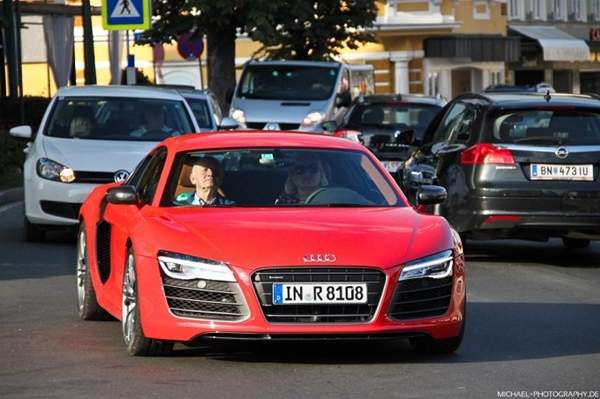 Quindi sono loro ad aver avuto il privilegio di provare la nuova Audi R8 V10 Plus, modello che si posiziona proprio al vertice della gamma e che potrà contare sulla spinta del propulsore da 5,2 litri FSI V10 a benzina, in grado di raggiungere una potenza complessiva pari a 550 cavalli e 540 Nm di coppia massima. Le foto relative alla prova su strada dei coniugi Piech con la nuova Audi R8 restyling sono state catturate a Velden, in terra tedesca.