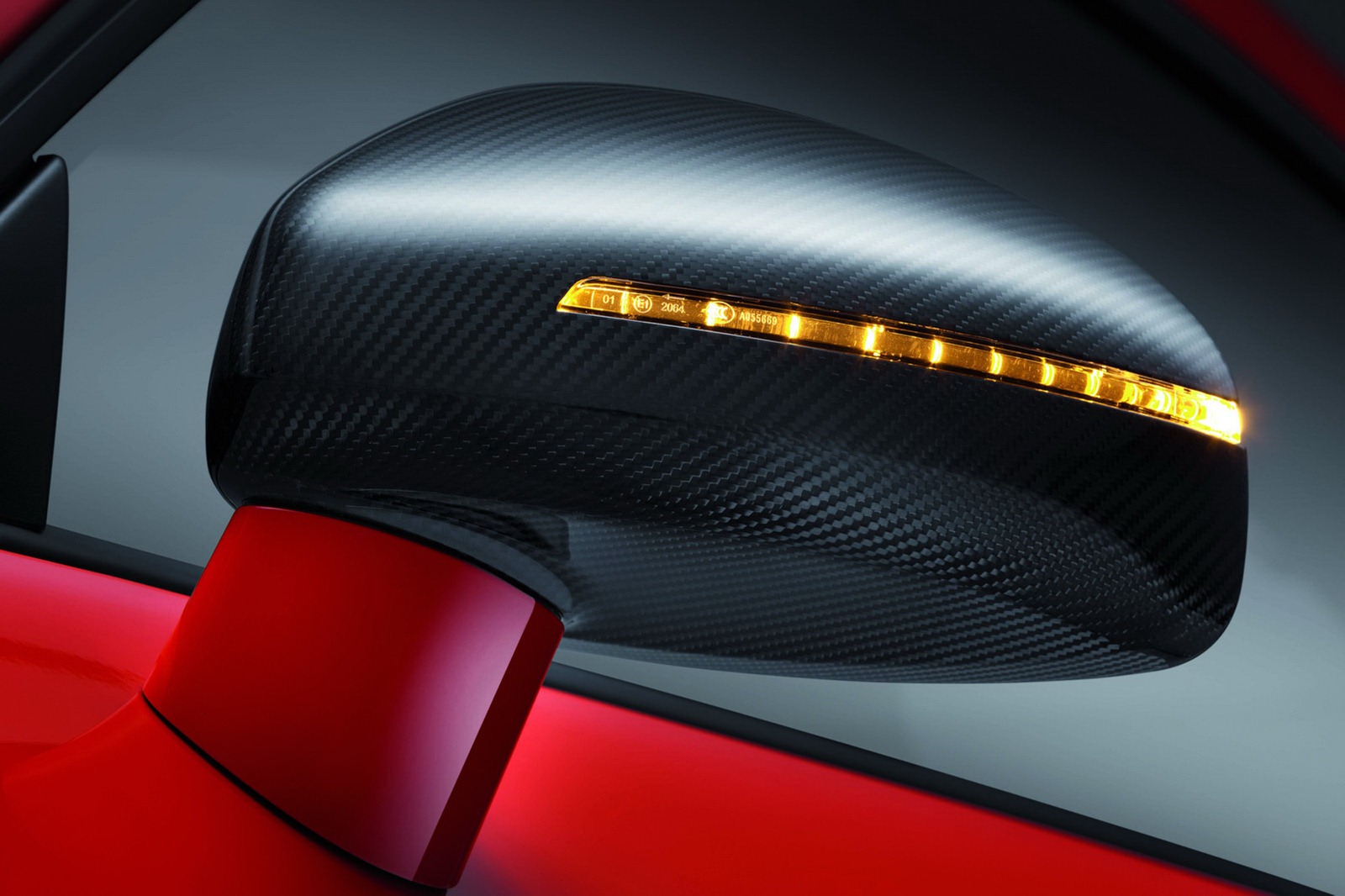 LIEVI CAMBIAMENTI STILISTICI Riconoscere la nuova Audi TT RS Plus da Audi TT RS tout court non è così facile: la nuova declinazione viene dotata di cerchi in lega neri da 19 pollici con bordo rosso, calotte degli specchi retrovisori esterni in CFRP, cover del propulsore in fibra di carbonio, nuova mascherina frontale in alluminio satinato con griglia di colore antracite lucido, nuovo sound prodotto dai terminali di scarico e pomello della leva del cambio in alluminio. Ovvio: anche i loghi vi aiutano a riconoscerla.