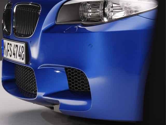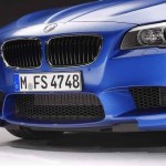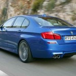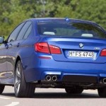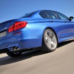La nuova BMW M5 F10 berlina viene ritratta, in queste immagini ufficiali, con un vestito molto muscoloso, decorato da una tonalità Monte Carlo Blue: le forme eleganti e le linee raffinate della tre volumi da cui la sportiva deriva (BMW Serie 5) vengono irrobustite ed energizzate da bombature e da segni aggressivi: la dotazione esclusiva della nuova M5 comprende fasce paraurti anteriore e posteriore, cerchi in lega da 20 pollici a cinque doppie razze, terminali di scarico sporgenti, spoiler, appendici aerodinamiche ed un abitacolo decisamente più sportivo di quello dell’attuale generazione di BMW Serie 5. Le differenze tra la nuova BMW M5 e la concept car che nel mese di aprile, presso il Salone di Shanghai 2011, l’ha anticipata sono davvero minime.