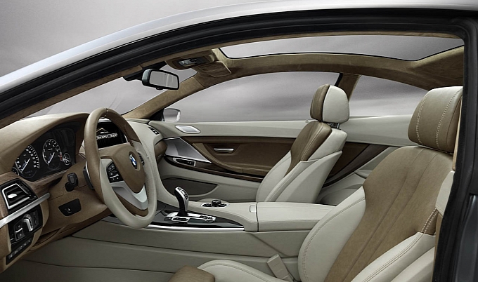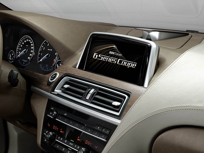 La dotazione della nuova BMW Serie 6 Coupé Concept, di cui è stata equipaggiata la vettura e di cui ci raccontano un qualche dettaglio le foto ufficiali, sono il rivestimento in pelle bicolore, lo schermo navigazione (da cui si gestiscono altresì numerose funzioni dell’autovettura) da 10,2 pollici, gli pneumatici in lega da 20 pollici a cinque triple razze, l’illuminazione a LED, i doppi reni cromati, i due scarichi rettangolari integrati, il dispositivo di controllo iDrive e l’impianto audio prodotto da Bang&Olufsen.