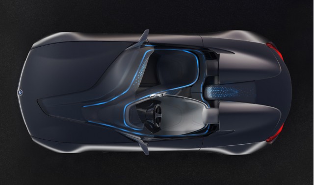 All’interno dell’abitacolo della nuova BMW Vision ConnectedDrive (senza dubbio la parte della vettura più interessante), un’atmosfera modernissima: l’ambiente pulito, ordinato, razionale cela un cuore pensante (che è la vera novità di questa concept car). La nuova roadster ConnectedDrive, infatti, può dialogare con tutto ciò che sta fuori (grazie a sensori e microtelecamere), con il mondo virtuale (la connessione ad internet è d’obbligo), con il pilota (grazie al sistema evoluto Head-Up Display, HUD per gli amici) e con il passeggero (grazie al Passenger Information Display, di fronte al sedile, nella parte destra della plancia).