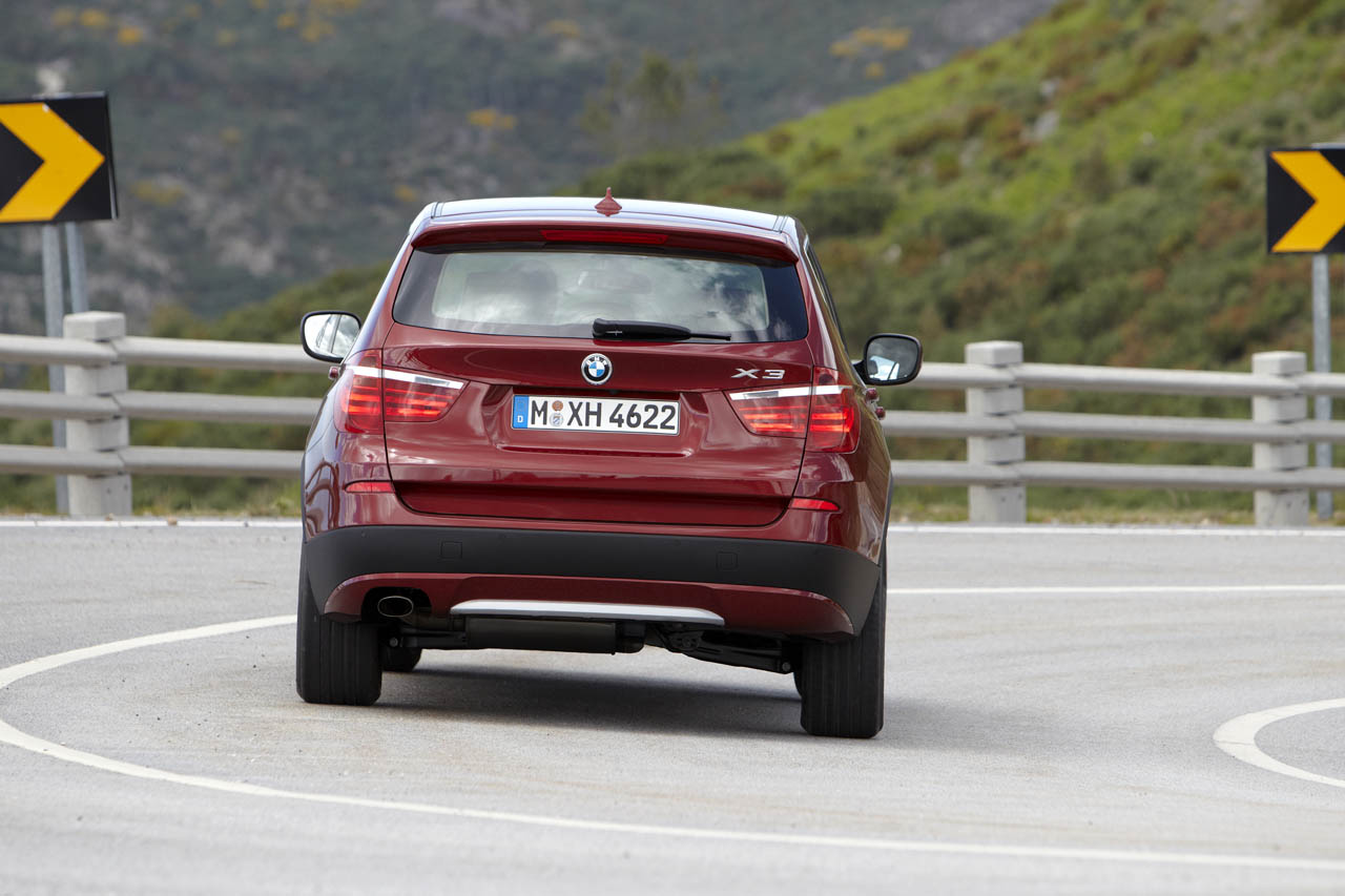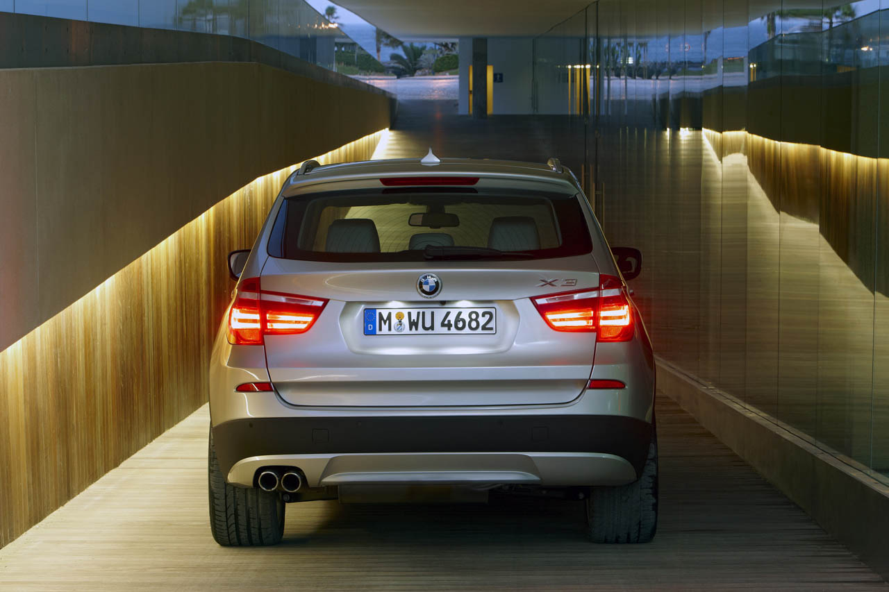 La nuova BMW X3 2011 è più lunga, rispetto al predecessore, di 78 millimetri e raggiunge quota 4,684 metri, è più alta di 14 millimetri e misura 1,675 metri ed è meno larga di 4 millimetri, limatura che porta la dimensione a 1,855 metri in totale: il passo è ora più generoso, meno parsimonioso di comfort, ed è lungo 2,810 metri, con un incremento pari a 15 millimetri. Il volume del bagagliaio della seconda generazione di X3 è pari a 550 litri in configurazione standard, 70 in più rispetto alla vettura odierna.