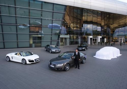 Audi, al salone di Parigi, un curioso display con sistema di ricarica dei 4 anelli