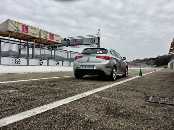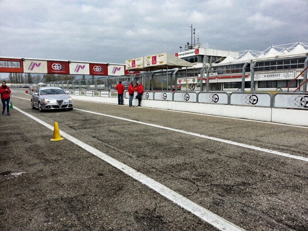 Da lì in poco tempo siamo arrivati direttamente sulla pista, snocciolando un’attività dopo l’altra e cimentandoci con i mini-contest che ogni specifico percorso prevedeva: dalla frenata d’emergenza con schivata di ostacolo improvviso alla guida con miniskid car a simulare una sovrasterzata continua (ovvero, come non perdere il controllo del veicolo in casi estremi come un fondo ghiacciato), al GT track su pista bagnata per sottolineare quanto è importante nella guida quotidiana il lavoro continuo degli accessori di sicurezza montati sulle vetture di Alfa Romeo.