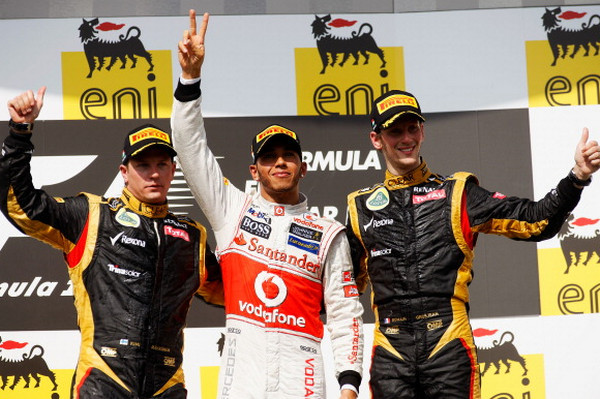 Pochi sorpassi e tanto impegno nelle strategie: quella più efficace la ottenuta Raikkonen, partito quinto è stato capace di arrivare secondo strappando la posizione al compagno Grosjean, autore anch’egli di una bella gara. Red Bull e Button hanno provato l’azzardo, gli unici con la strategia perdente delle 3 soste che ha permesso ad Alonso di portare a casa una mediocre quinta posizione in una gara tutta in salita.