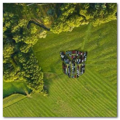La foto che vi presentiamo adesso (e che potete ammirare dopo il salto), ritrae infatti il logo del film Transformers formato da oltre cento vere automobili.