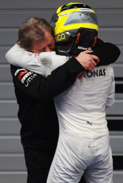 In una sola giornata il tedesco è riuscito a raccogliere tantissimi risultati: prima pole e vittoria in carriera, è riuscito a battere il compagno sette volte campione del mondo con una macchina non progettata attorno a lui, ma soprattutto è riuscito a portare la Mercedes alla vittoria dopo 57 anni. L’entusiasmo incontenibile di Norbert Haug, le lodi dello sfortunato Schumacher e la bravura di Ross Brawn, l’uomo che non è riuscito a far vincere la stessa squadra solo sotto bandiera giapponese, rende un quadro perfetto in questo Gran Premio della Cina 2012.