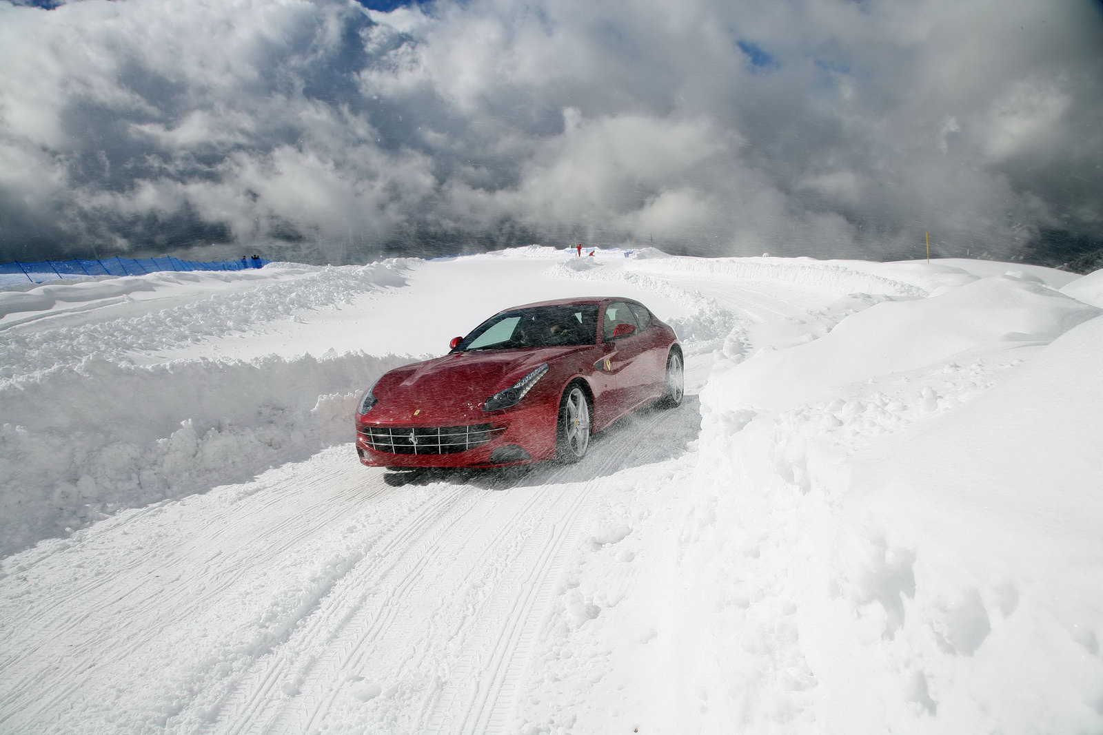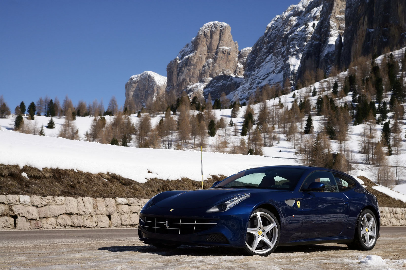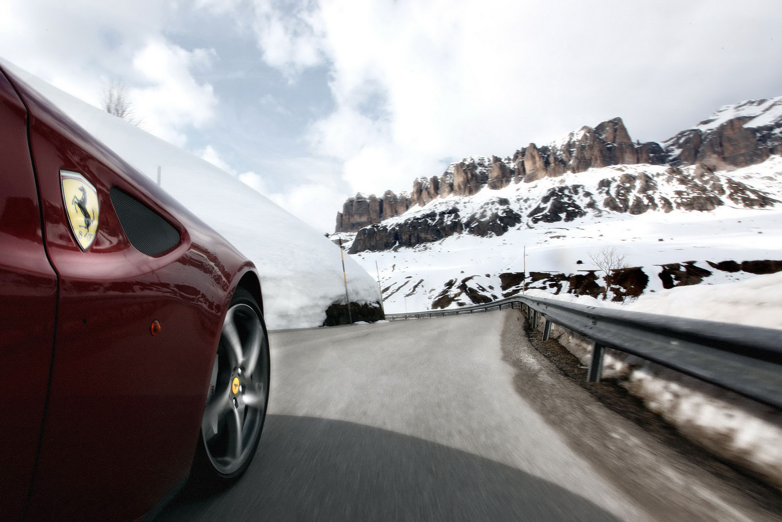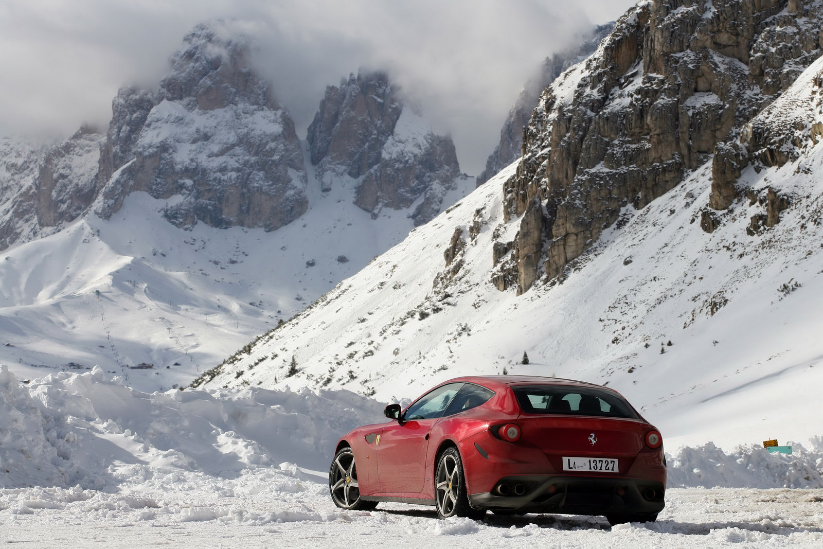 La casa automobilistica italiana Ferrari ha divulgato alcune nuove immagini ufficiali della più recente supercar sfornata all’interno degli stabilimenti di Maranello, cioè Ferrari FF; la prima vettura sportiva a trazione integrale della storia dell’azienda del Cavallino Rampante viene qui immortalata nell’affascinante scenografia delle Dolomiti: uno scenario particolare per una fastback dell’azienda italiana, che abbiamo sempre immaginato protagonista all’interno di circuiti, tra cordoli e guanti da pilota, e non tra vette innevate e tortuosi passi di montagna.