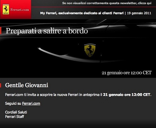 Tutte queste informazioni provengono da una fuga di notizie che, ovviamente, non possiamo andare a controllare a Maranello: i dettagli sono da prendere con le pinze, almeno sino a che Ferrari non ci svelerà l’ultimo prodotto, in ordine di tempo, del Cavallino Rampante, al Salone di Ginevra 2011 (3-13 marzo).