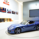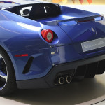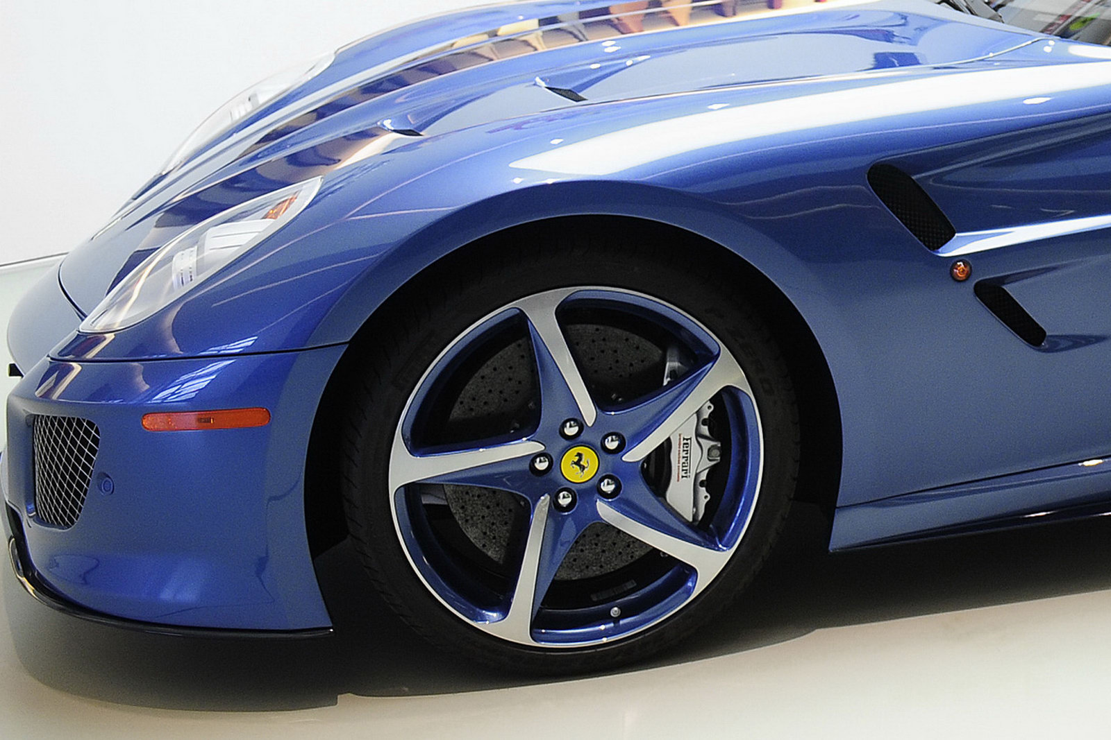 Cosa c’è di nuovo? La casa automobilistica italiana di Maranello ha disegnato la nuova Superamerica 45 in casa, nel proprio stabilimento (erroneamente avevamo indicato in Pininfarina l’autore del design), innestando un nuovo tettuccio rigido metallico asportabile ed un nuovo cofano posteriore nella carrozzeria di Ferrari 599. L’aspetto estetico della nuova Ferrari Superamerica 45 viene dominato dalle forme muscolose, come le due pinne posteriori che nascono direttamente dai parafango degli pneumatici trainanti, la presa d’aria doppia che si apre sul versante laterale o il diffusore posteriore in fibra di carbonio colore blu (dello stesso materiale e nella stessa tonalità i montanti anteriori e la fascia paraurti anteriore). Il colore della carrozzeria (Blu Antille: una tonalità molto densa ed accesa, che ricorda quella di Ferrari 400 Superamerica, altra supercar davvero esclusiva posseduta da Kalikow) si scontra con le cromature, centellinate sul corpo della nuova Ferrari Superamerica 45, e con i cerchi in lega bicromatici (argento-blu) energici, sportivi.