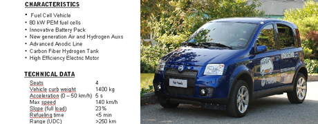 E’ stata presentata al Battery Show in California la nuova concept Fiat Panda Hybrid Fuel Cell. L’idea è geniale quella di creare un’auto ad idrogeno tramite celle a combustibile, continuando il percorso verso le zero emissioni. La compatta 5 porte italiana è mossa da un motore elettrico alimentato da batterie agli ioni di litio, che si ricavano da un gruppo di pile a combustibile . La Fiat Panda Hybrid Fuel Cell ha già partecipato al Challenge Bibendum 2010 tenutosi a Rio de Janeiro, in Brasile, evento durante il quale sono stati testati i livelli di potenza, autonomia e sicurezza offerti dal sistema batterie.