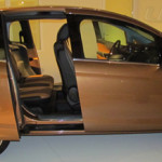 La nuova Ford B-MAX, ovviamente, sarà dotata di maniglie esterne per l’apertura delle porte a differenza della versione concept per la quale è necessario un telecomando. Inoltre, la colorazione di lancio (e di punta) sarà più chiara rispetto a quella della concept mostrata in queste foto. Una colorazione che va tra il bronzo ed il dorato metallizzato che ricorda molto i colori di alcuni indumenti (in particolare quelli lucidi) che si sono visti in giro durante l’ultima stagione invernale e che continueranno a vestire le donne durante il 2012-2013. Poi, per togliere il dubbio a chiunque lo avesse, l’apertura della porta posteriore non sarà subordinata all’apertura della porta anteriore, come mostrato nell’immagine. Le porte si possono aprire nell’ordine che si preferisce e che è più comodo per gli ospiti dell’abitacolo.