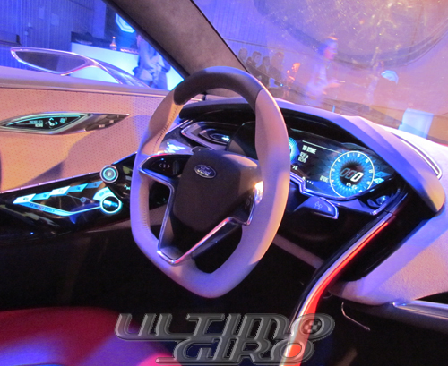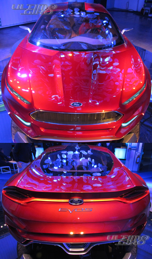 L’immagine di apertura, purtroppo, non può riprodurre l’esperienza visiva avuta il 28 novembre 2011 a Milano dove Ford ha mostrato la Ford EVOS Concept. Cercheremo quindi di riportarvi a parole le sensazioni che questa automobile ci ha offerto in un’ambiente allestito ad hoc. Posata su uno specchio a forma di nuvola (“cloud” in inglese) la EVOS è pensata come una automobile disegnata intorno ai suoi ospiti. Non solo comodità e sicurezza, ma anche tecnologia: cloud computing.