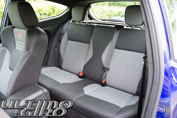Adatto per tre persone, ma molto meglio se occupato solo da due, non è il massimo della comodità a causa della rigidità della vettura e della selleria posteriore stessa. Se a questo si aggiunge la linea della vettura con finestrini piccoli e stretti nella zona posteriore, chi si accomoda in seconda linea si trova in uno spazio che alcuni potrebbero considerare al limite del claustrofobico. Situazione accentuata dall’accessibilità all’abitacolo della Fiesta ST che è una tre porte.