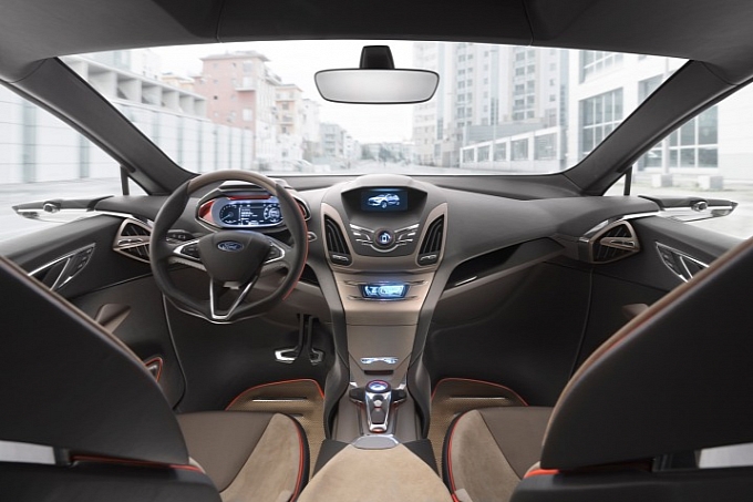 All’interno dell’abitacolo della nuova Ford Vertrek Concept, il costruttore ha disegnato una scenografia futuristica (che difficilmente rimarrà intaccata, da qui alla commercializzazione): la consolle centrale, verticale, domina l’ambiente pulito, ordinato, mentre il volante sportivo, le sedute anteriori e posteriori sportive e la strumentazione sportiva donano un maggiore grado di aggressività. La casa automobilistica ha scelto il motore benzina 1,6 litri, quattro cilindri in linea, con sovralimentazione (Ecoboost), per il muletto presentato al Salone di Detroit 2011 (non sappiamo con quale dose di potenza annessa), avvicinandogli lo Start&Stop automatico ed una trasmissione (automatica?) a sei velocità.