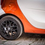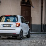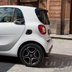 Nelle due modalità di guida disponibili (Eco e Sport) si avverte quindi una grande differenza rispetto al “vecchio” cambio di smart ForTwo: niente più singhiozzi alle ripartenze, perché la gestione delle marce sembra ora affidata ad una tecnologia decisamente più intelligente, ed una maggior fluidità di guida anche alle velocità più elevate. Il nuovo cambio automatico twinamic dota smart ForTwo di maturità, conferendo una sensazione di efficienza e stabilità, elementi che rendono il twinamic perfetto per l’utilizzo agile in città – e non solo -; rispetto al precedente automatico a 5 rapporti non avvertiamo più sulla nuova ForTwo quell’effetto “oscillante” talvolta sperimentato nella selezione del rapporto, con un risvolto estremamente positivo sul piacere di guida. Solo un dettagli ci ha lasciato interdetti: in alcune condizioni, il twinamic della nostra smart 70 sembrava in difficoltà, con il numero di giri ad incrementare per un cospicuo numero di secondi prima che si passasse alla marcia successiva. Un fenomeno sperimentato soprattutto nei percorsi più ripidi, ma che non ci ha mai fatto vedere la smart ForTwo perder di trazione.