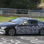 Bassa e lunga, morbida e densa, sportiva e disinibita: è la nuova BMW Serie 6 GranCoupé, cioè la nuova coupé a quattro porte della casa automobilistica dell’Elica di Monaco. Non è ancora il momento del suo debutto, dato che sarà presentata ufficialmente durante l’anno venturo e che non sarà presente al Salone di Francoforte 2011: queste foto spia dimostrano che lo sviluppo non è ancora terminato e testimoniano che l’azienda tedesca sta dando grande attenzione alla vettura, pensata per soffiare contratti ad Audi A7 Sportback, a Mercedes CLS, a Porsche Panamera e a tutte le altre berline-coupé annunciate da molti, moltissimi costruttori automobilistici internazionali (dopotutto, questa tipologia di carrozzeria piace davvero tanto: è uno dei pochi settori che stanno avendo grande successo). Per la precisione, in queste immagini, scattate presso il circuito del Nurburgring, in Germania, la casa automobilistica BMW sta mettendo a punto il pacchetto M-Sport per la nuova Serie 6 GranCoupé.