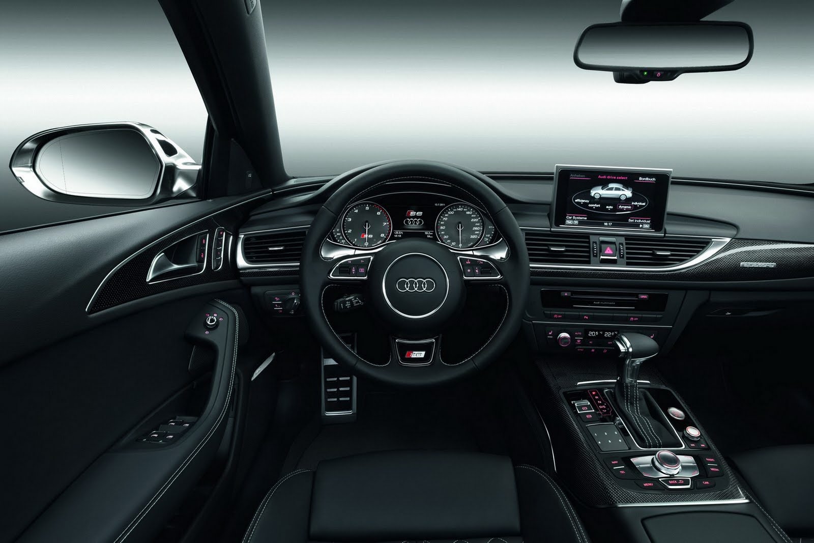 La dotazione meccanica sportiva della nuova Audi S6 2012 comprende anche la trazione integrale Quattro (che “S” sarebbe, senza?), il cambio doppia frizione robotizzato S Tronic a sette marce, un nuovo impianto freni con dischi autoventilanti (optional quello in carbo-ceramica), un nuovo impianto di sospensioni ad aria attive ed un nuovo differenziale centrale.