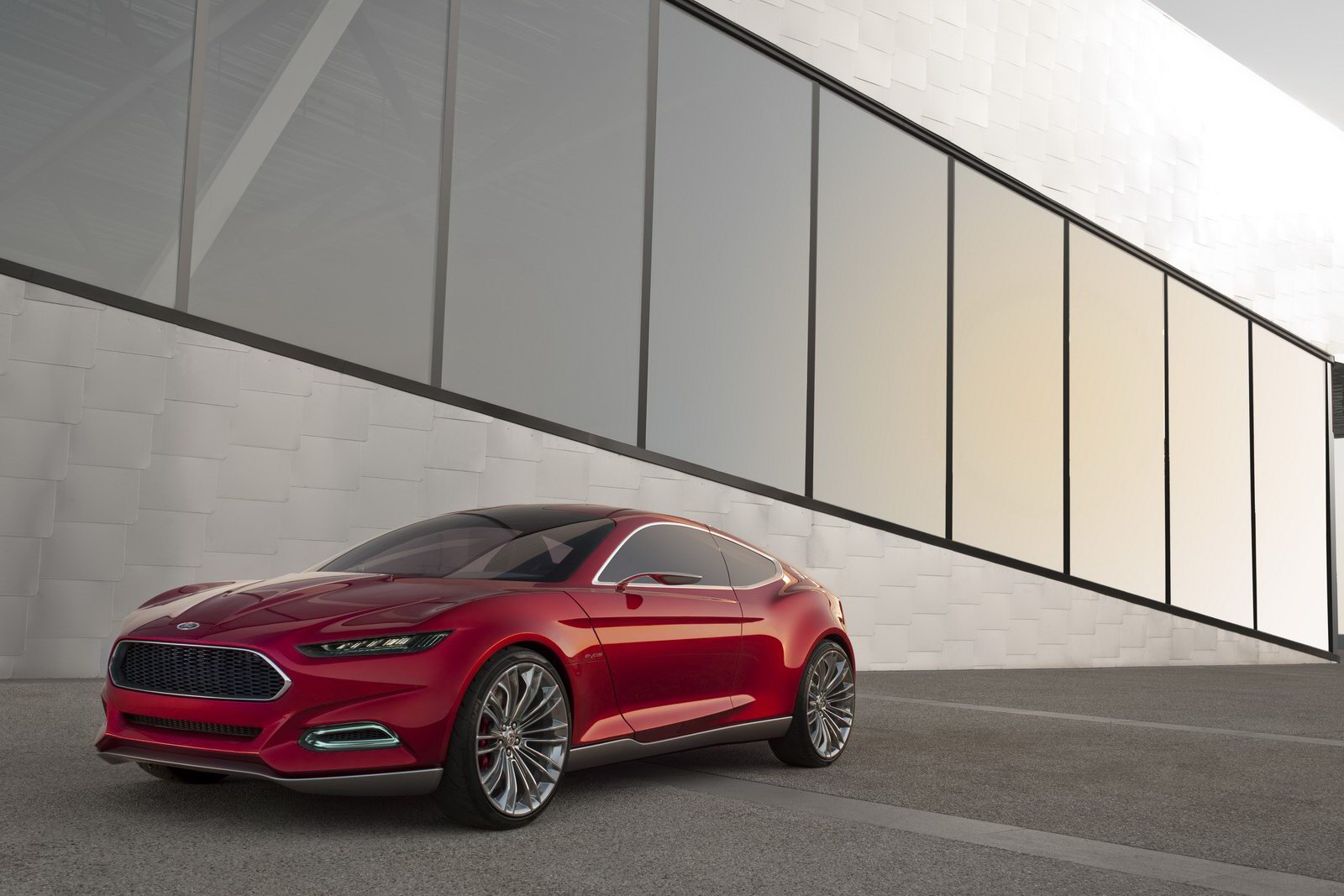 La casa automobilistica statunitense Ford sceglie il Salone di Francoforte 2011 per svelare la nuova Evos Concept, quel prototipo che ci aveva anticipato con un teaser ufficiale, qualche giorno fa. La kermesse settembrina, con la sua carica di entusiasmo e di attenzioni, è senza dubbio il palcoscenico ideale per togliere il velo da una vettura come Ford Evos, cioè il perno dell’evoluzione del brand dell’Ovale Blu e l’inizio di un nuovo capitolo estetico per la maison americana. La vedremo su strada? Difficilmente: la nuova Ford Evos Concept ha un altro scopo; non si esclude, tuttavia, che la casa automobilistica decida, un giorno, di trasformare il prototipo in realtà e di dare vita ad una coupé/coupé a quattro porte da questa vettura.