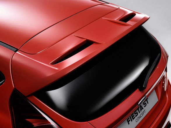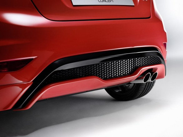 La nuova Ford Fiesta ST Concept viene caratterizzata infatti dalla nuova mascherina anteriore, che segna la trasformazione dello stile di Ford e l’evoluzione del Kinetic Design: si tratta della stessa bocca trapezoidale che si trova nella parte frontale di Ford Focus ST e su quella di Ford Evos Concept e che da oggi in poi tutte le vetture della casa automobilistica sfrutteranno, per essere immediatamente riconoscibili. La nuova Ford Fiesta ST Concept viene inoltre dotata di fasce paraurti sportive, di nuovi cerchi in lega e di nuovi sedili Recaro, di spoiler posteriore, di terminali di scarico esclusivi e di appendici aerodinamiche e di altri dettagli, capaci di estremizzare la linea e le emozioni emanate dalla piccola utilitaria di segmento B della gamma. Possiamo anche ipotizzare che la nuova Ford Fiesta ST Concept sia dotata di sospensioni, assetto e freni sportivi, più performanti rispetto a quelli della vettura da cui il prototipo nasce.