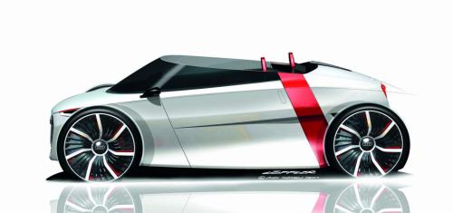 Audi Urban Concept si toglie il tetto e fa a meno di un pezzo di carrozzeria. La casa automobilistica tedesca Audi, in prossimità dell’inizio del Salone di Francoforte 2011 (15/25 settembre) e dopo aver mostrato i bozzetti ufficiali della nuova Urban Concept, ha svelato infatti alcuni teaser ufficiali della nuova Audi Urban Spyder Concept, cioè la versione senza tetto della citycar elettrica compatta che abbiamo visto anche all’interno di un video-teaser ufficiale, pochi giorni fa, e che abbiamo esaminato grazie ad alcune foto spia scattate a Berlino. Proprio come è accaduto alla sportiva ecologica Audi E-tron, che è stata confezionata alcuni mesi fa sia in versione coupé sia in versione roadster, nonostante si tratti di una concept car, anche la nuova Audi Urban Concept viene proposta in due declinazioni, forse per impressionare maggiormente il pubblico del Salone di Francoforte 2011 (anche la nuova versione Spyder dell’utilitaria compatta dovrebbe infatti essere presentata nel corso della manifestazione tedesca, che si svolgerà nel mese di settembre prossimo, tra il giorno 15 ed il giorno 25).