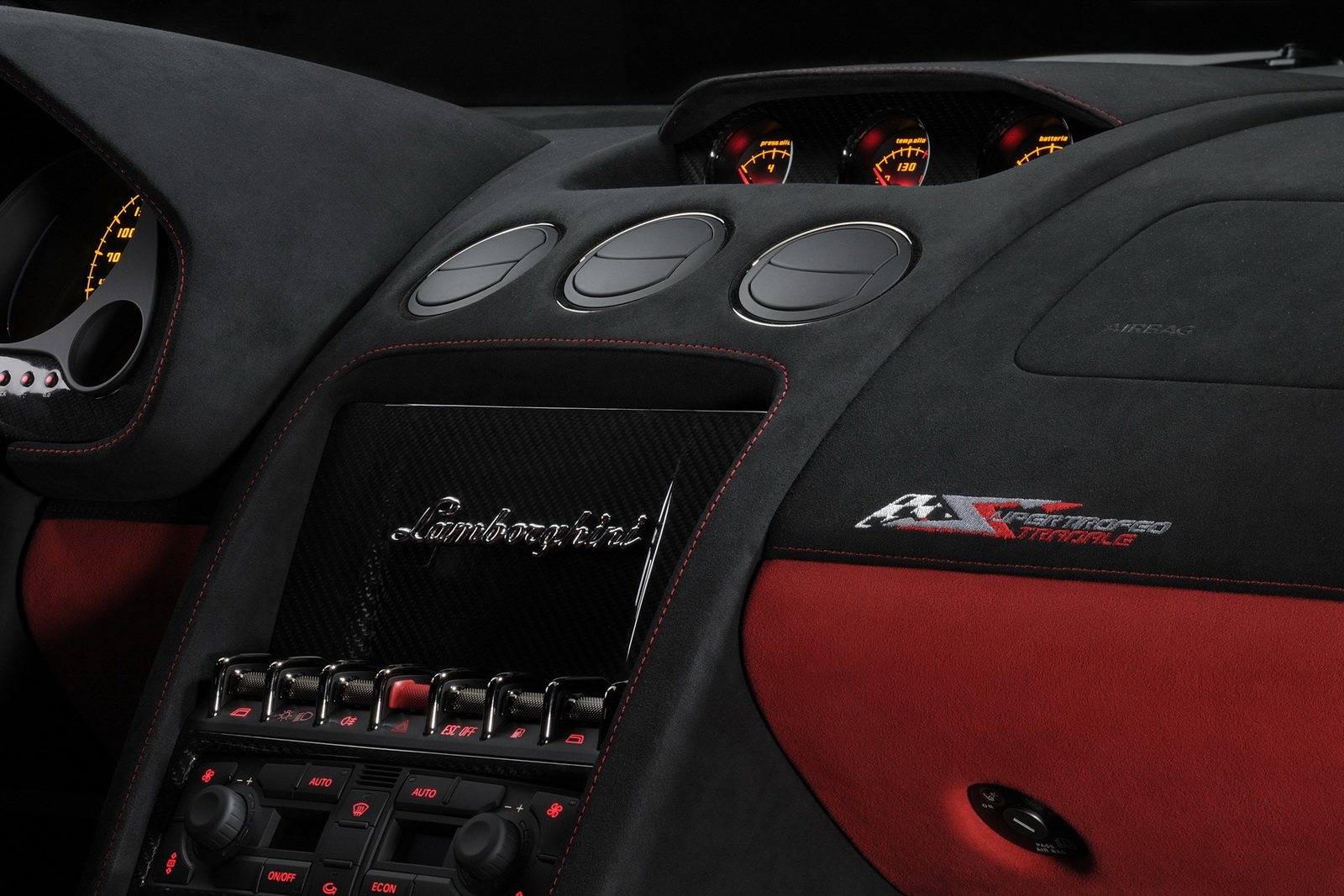 Ereditati dalle competizioni il pacchetto aerodinamico, il grande spoiler posteriore, il cofano asportabile con ganci, il nuovo impianto sospensivo ed il nuovo impianto frenante. La nuova Lamborghini Gallardo LP 570-4 Super Trofeo Stradale viene proposta con il colore Rosso Mars o con le cromie Grigio Telesto e Bianco Monocerus (opzionali). All’interno dell’abitacolo, dite? L’ambiente aggressivo tipico di ogni altra versione di Gallardo, caratterizzato da un abbondante uso di Alcantara, da un’energia mai velata e dalla totale assenza di ogni tipo di fronzolo (notate la mancanza dello schermo del navigatore satellitare).