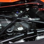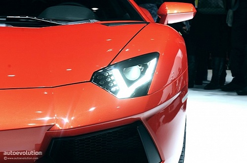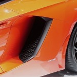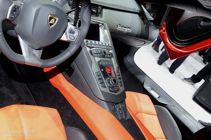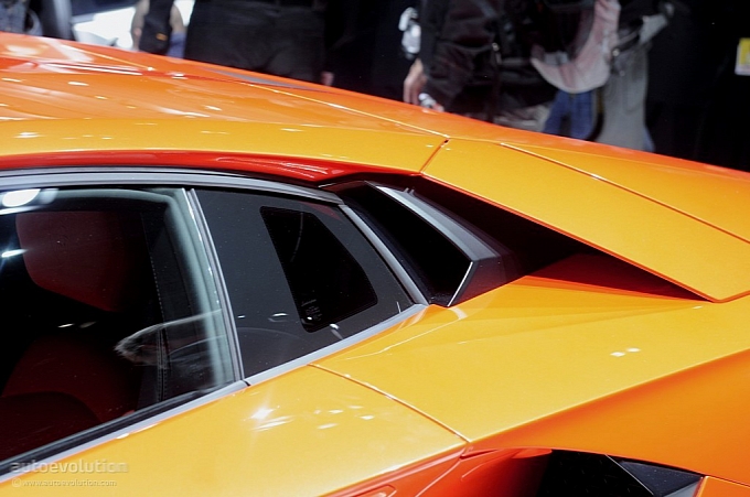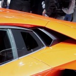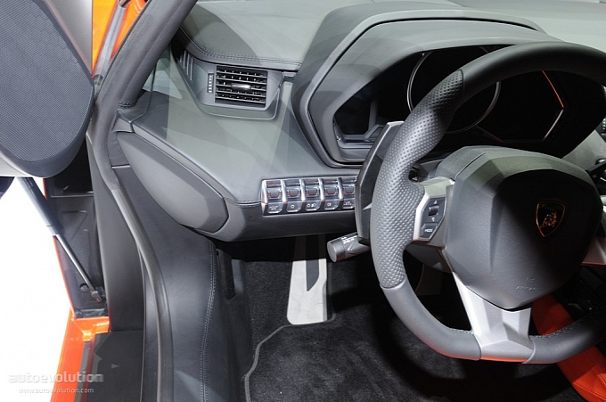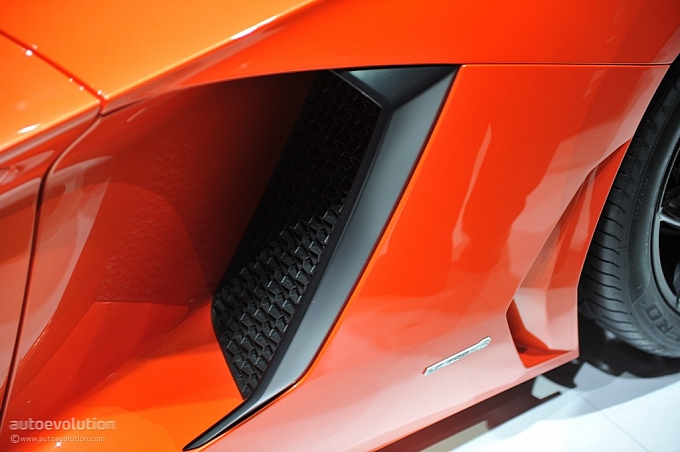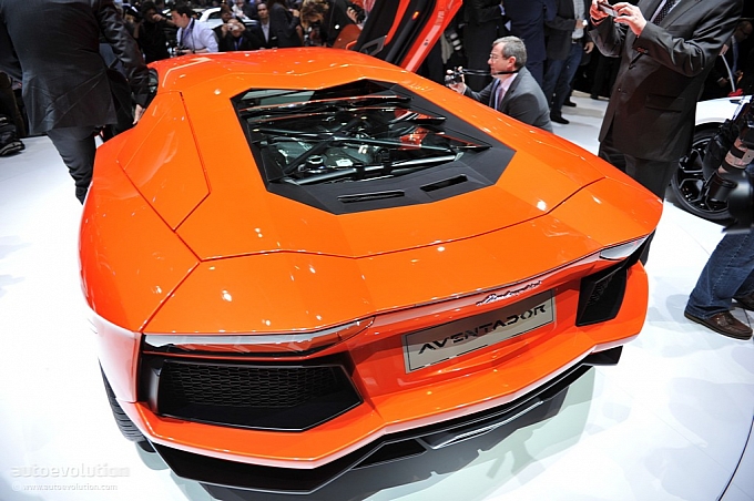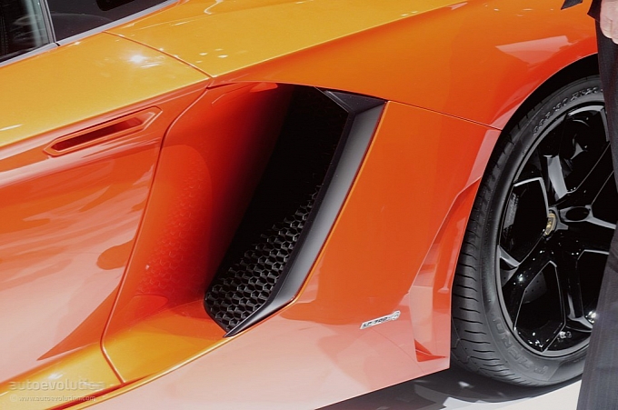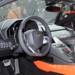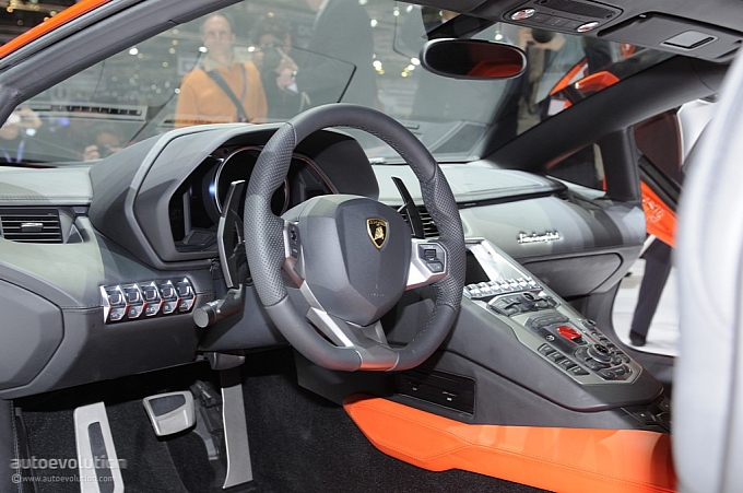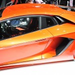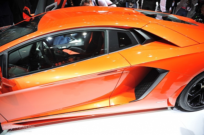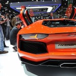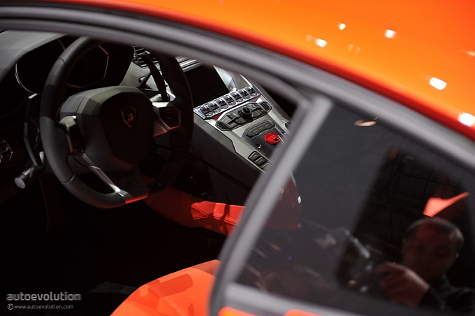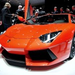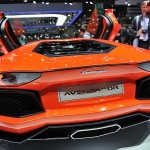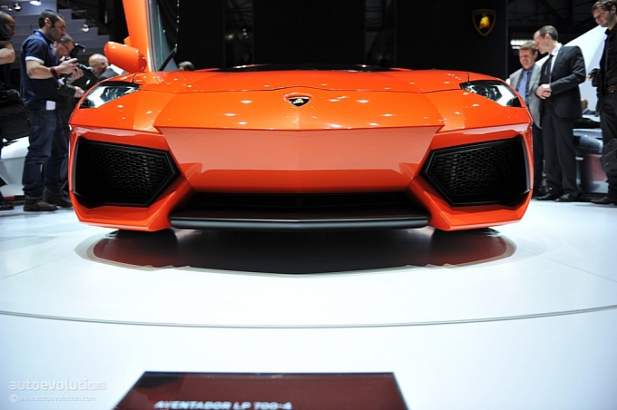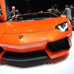 Chissà per quale motivo la casa automobilistica ha scelto di esporre la nuova Lamborghini Aventador LP 700-4 con una cromia tra il rosso e l’arancio, invece che scegliere il più classico giallo tipicamente Lamborghini. Non ha importanza: sono solo curiosità che di fronte alle doti di questa supercar da 1.575 chilogrammi scompaiono istantaneamente: la nuova Lamborghini Aventador LP 700-4 viene dotata di un inedito motore 6,5 litri V12 benzina, in grado di erogare 700 cavalli, di un cambio automatico moderno a sette marce e doppia asta (in grado di cambiare rapporto in circa 50 millisecondi), di un impianto sospensivo raffinato push-rod, di una monoscocca in fibra di carbonio, della trazione integrale con ripartitore Haldex, di un impianto freni adatto alle prestazioni, prodotto da Brembo in fibra di carbonio e ceramica, e di un abitacolo concepito per emanare sportività, energia e aggressività in ogni suo elemento (soltanto io noto qualche somiglianza con il mondo Audi, all’interno della nuova Lamborghini Aventador LP 700-4?).