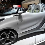 La nuova Smart Forspeed Concept è un’utilitaria di dimensioni contenute, come ormai impresso nella tradizione della casa automobilistica: si tratta di un rielaborazione di Smart Crossblade, quella particolare spiaggina che è stata commercializzata dal brand in circa duemila esemplari per poco tempo a partire dal 2002. Come la versione Crossblade, anche la nuova Smart Forspeed è completamente sprovvista di tetto (in metallo o in tessuto) ed ha un lunotto anteriore molto piccolo ed un lunotto posteriore pressoché assente (sostituito, qui, da una coppia di roll-bar che fuoriescono dalla carrozzeria dell’utilitaria di segmento A). La nuova Smart Forspeed Concept viene disegnata da una matita molto morbida, che deriva e si evolve direttamente dall’attuale linguaggio stilistico e da quello che ha dato vita alla prima Smart ForTwo: tratti molto densi, sempre rotondeggianti, mai rigidi, forme dolci, segni gommosi. Sarà così, la nuova famiglia Smart? Non possiamo assicurarlo, ovviamente, ma è molto probabile che le prossime vetture Smart commercializzate da qui in poi siano simili alla concept car Smart Forspeed.