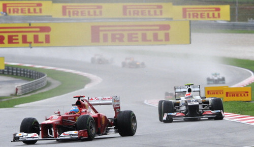 La gara è stata interrotta a nove giri dalla partenza ed è poi ripartita dopo circa 30 minuti. Da li la fortuna e le straordinarie capacità di Fernando Alonso hanno permesso ad una Ferrari costantemente minacciata dalla Sauber di vincere. La Ferrari si è rivelata imprendibile sul bagnato, ma una volta asciugata la pista e montate le slick, la macchina seppur leggera di benzina ha reso poco, subendo le minacce di Perez che sbagliando a pochi giri dalla gara, ha compromesso il suo attacco finale, accontentandosi comunque dell’ottimo secondo posto.