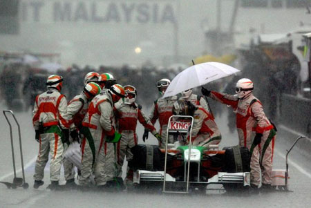 Spettatori annoiati di Formula 1 state tranquilli. Anche la prossima gara si annuncia ricca di sorprese e non sarà un altro Gran Premio Bahrain-style con partenza e arrivo identici (problema meccanico della Red Bull di Vettel a parte): in Malesia è annunciata pioggia e sotto l’acqua le vetture di F.1 regalano sorpassi e testa-coda che esaltano gli spettatori. Secondo le previsioni meteo, infatti, per tutta la settimana sono previsti acquazzoni nelle tarde ore pomeridiane ed è molto probabile che si ripeta quanto già visto nella scorsa stagione, quando il Gran Premio si corse sotto un diluvio. Anche i bookmakers ne hanno tenuto conto nelle quotazioni del caso. Il tema meteo è diventato attuale subito dopo la prova all’Albert Park in Australia: già sull’aereo che ha portato i piloti in Malesia sono iniziate le discussioni sulle previsioni atmosferiche. Si teme che come nel 2009 la gara possa essere interrotta prima della fine (con assegnazione della metà dei punteggi previsti) a causa dell’acqua che rende impossibile guidare in pista. Attualmente in Malesia ci sono circa 40 gradi al mattino, ma prima di sera la pioggia non è un evento raro: in questa stagione per evitare di ripetere quanto già visto nel 2009, la partenza è stata anticipata, ma il pericolo pioggia è sempre in agguato. Lo scorso anno in Malesia ci fu lo spazio anche per un singolare siparietto di Kimi Raikkonen che decise di fermarsi ai box Ferrari a mangiarsi un gelato di frutta mentre fuori la pioggia impediva di riprendere la corsa: si seppe solo in seguito che la F60 non avrebbe potuto tornare in pista per un problema al Kers, ma il GP di Malesia passò alla storia come “il giorno del gelato di Kimi”. Come detto in questa stagione la partenza è stata anticipata di un’ora e il via avverrà alle 4 del pomeriggio (le 10 italiane) e questo dovrebbe impedire di finire la corsa sotto un violento acquazzone. In caso di pioggia, però, la grande favorita è sicuramente la Red Bull, seguita però dalla Ferrari.