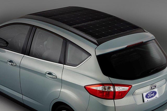 La Ford C-Max Solar Energi Concept è dotata di pannelli fotovoltaici sul tetto e di uno speciale convogliatore di energia che utilizza il principio delle lenti d’ingrandimento. Un giorno di ricarica attraverso l’esposizione al sole permette a questa automobile di avere la stessa carica di una ibrida plug-in al massimo.