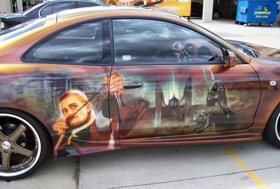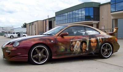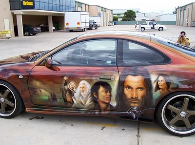 La curiosa auto che vedete nelle foto, è in realtà una Toyota Celica truccata da “Il Signore degli Anelli” risalente al 1996, ed il suo autore è un certo Jason. Non c’è che dire, fa davvero un bell’effetto vedere i mitici personaggi della trilogia cinematografica di Peter Jackson (o dell’inimitabile libro di Tolkien, forse sarebbe più giusto) scorrazzare per le strade, disegnati su quella che sembrerebbe una normale auto… o no?