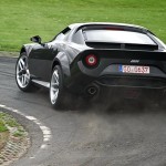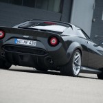 L’affascinante linea esterna di Lancia Stratos, sviluppata da Pininfarina, è stata installata sulla piattaforma di Ferrari F430 Scuderia, accorciata, tuttavia, di circa venti centimetri, anche – forse – per dare l’aspetto mozzato, troncato di netto, e i volumi raccolti, concentrati. Il corpo della supercar viene realizzato completamente in fibra di carbonio: il risultato? dite. Beh, la nuova Stratos pesa complessivamente circa 1.247 chilogrammi (non così distanti dai 1.250 a secco di F430 Scuderia e dai 1.350 in ordine di marcia), distribuiti per il 44% alla parte anteriore e per il restante 56% alla zona posteriore. La sportiva Lancia viene equipaggiata con un nuovo impianto freni in carbo-ceramica, sviluppato da Brembo, e con pneumatici Dunlop Sport Maxx e cerchi in lega da 19 pollici. La trazione? Posteriore, come la storica antenata Stratos.