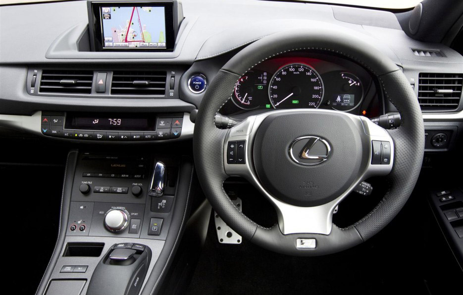All’interno dell’abitacolo della nuova Lexus CT 200h F-Sport, l’atmosfera è rimasta invariata, sostanzialmente intaccata: il costruttore giapponese, infatti, ha introdotto soltanto la pedaliera sportiva decorata in alluminio e un volante in pellame sportivo, con il badge “F-Sport” incluso nella razza più bassa. Non conosciamo l’entità dell’aggravio di prezzi che subirà il listino della media ibrida, sebbene la dotazione non sia così diametralmente opposta rispetto alle altre versioni ed il regime economico di commercializzazione sia…Premium. Lexus CT 200h F-Sport, ad ogni modo, rimane dotata della stessa tecnologia ecologica di Lexus CT 200h e l’allestimento “sportivo” non concede una nuova dose di potenza.