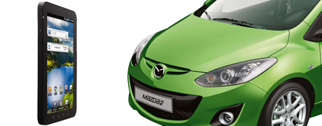 La Mazda è la prima auto ad essere abbinata ad un Tablet PC. Si tratta della Mazda2 5 porte in allestimento Trendy e-Motion Technology, che viene offerta insieme ad un Samsung Galaxy Tab 7″ comprensivo di connessione H3G inclusa per 12 mesi (100 MB al giorno per un massimo di 3 GB). Fanno parte di questo allestimento tutti i seguenti optional: “hi-tech” il Radio CD/MP3 con comando al volante, connettività Bluetooth, climatizzatore automatico, cerchi in lega da 15″, fendinebbia, vetri elettrici anteriori e posteriori ma c’è anche l’opzione benzina 1.3 litri da 75 CV.