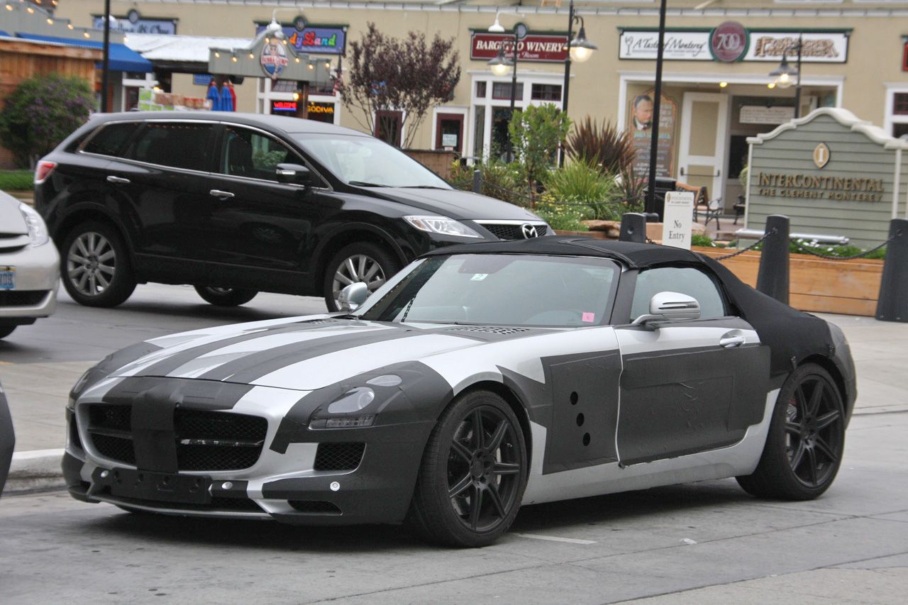 Monterey (California), per un giorno i dintorni del noto Hotel Intercontinental si sono trasformati in una passerella per quattro esemplari di Mercedes-Benz SLC convertible parzialmente camuffati.