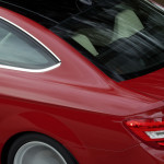 Sono poche le differenze che distaccano la nuova Mercedes Classe C Coupé dalla nuova Mercedes Classe C restyling berlina: un tetto più arcuato, un profilo vagamente più energico (anche se ancora molto molto elegante), una superficie vetrata meno ampia e più appuntita, un terzo volume posteriore meno evidenziato, una portiera in meno per versante, un montante posteriore più obliquo, un lunotto più inclinato. In sostanza, la nuova Classe C Coupé condivide numerosi dettagli con la berlina Classe C d’origine e non brilla per originalità: che, poi, è quello che si chiede in questo segmento: rispetto delle regole, pacatezza, forme comuni.
