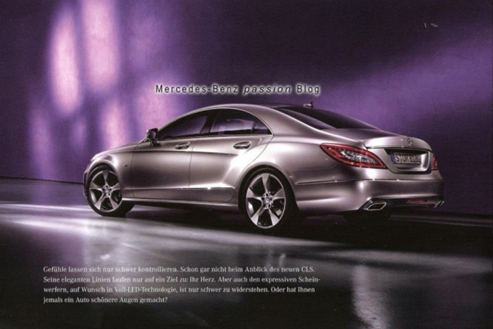 Mi riesce difficile – davvero – pensare che il tasso di modernità raggiunto venga, in un attimo, spazzato via, con negligenze palesi e neppure troppo celate. Rimango, per converso, sempre maggiormente convinto che questi accadimenti (queste sviste manageriali) siano da imputare ad una sana svolta di marketing, più che ad errori madornali, rilevanti e, oltretutto, assai gravi. Mercedes presenta, involontariamente, la brochure della nuova generazione, la seconda, di CLS, la prima berlina-coupé del mercato mondiale e l’unica del costruttore di Stoccarda. La presentazione del Salone di Parigi del prossimo ottobre (in programma dal 2 al 17) slitta ad oggi, la cui fase di suspance è, istantaneamente, annullata dalle immagini.