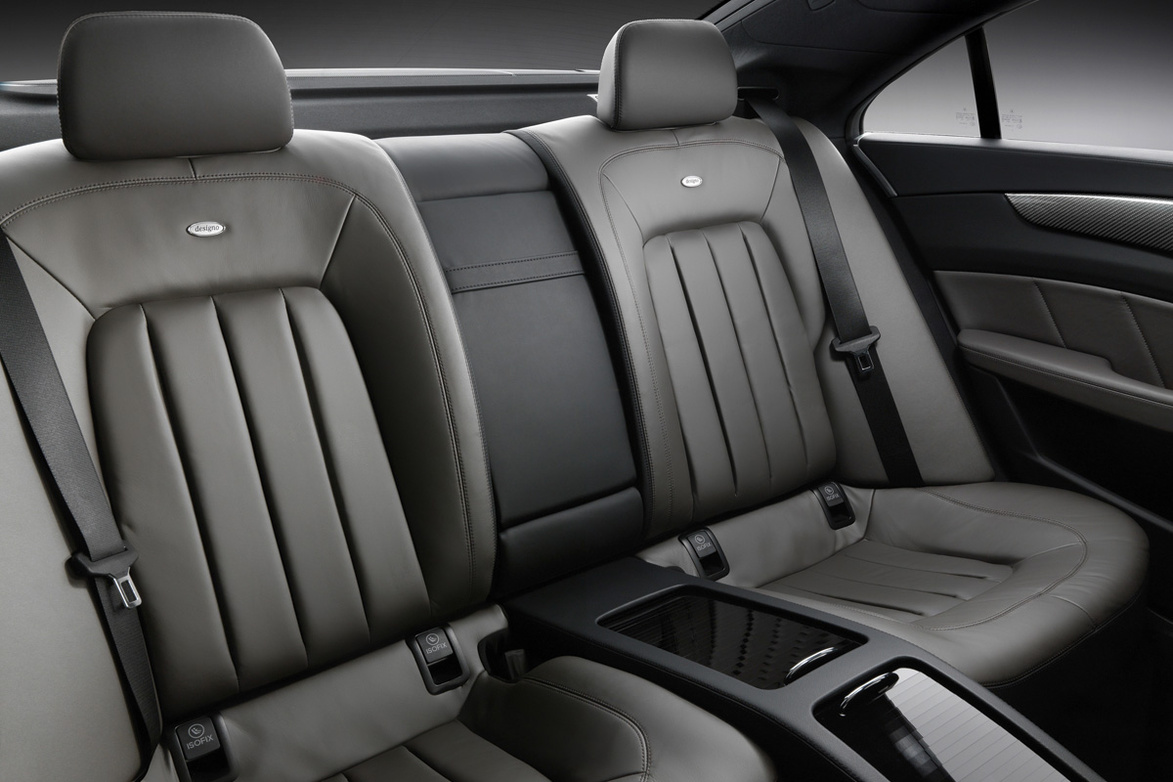 E poi ci sono quell’orologio angoloso, timido, ma patrizio, che collide con la tecnologica cromia dell’inserto decorativo che richiama la fibra di carbonio (o sarà, proprio, costituita del materiale anzidetto? Mah), il comando dell’apparato di infotainment, una manopola tondeggiante, scopiazzata dal sistema iDrive monacense, e le quattro sedute singole, a ribadire la parentela, stretta, con l’emisfero delle coupé (che, in fondo, in fondo, Mercedes CLS 2011 è ancora).