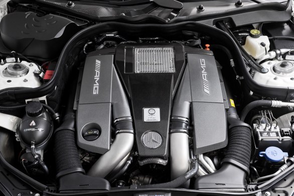 Sollevando il portellone e gettando uno sguardo all’interno del vano si può scoprire che la nuova Mercedes E63 AMG viene equipaggiata con un propulsore differente: pensionato il motore benzina 6,2 litri, con otto cilindri disposti a V e sistema di aspirazione naturale, oggi la berlina e la station wagon sportive sfruttano il più recente e il più ecologico motore benzina 5,5 litri, otto cilindri disposti a V, con un sistema di doppia sovralimentazione, che eroga 525 cavalli e 700 Nm di coppia massima, governati dalla trasmissione automatica sequenziale 7G-Tronic a sette marce già utilizzata in precedenza e trasferiti all’assale posteriore. La nuova Mercedes E63 AMG tocca la velocità massima di 250 chilometri orari e raggiunge i cento chilometri orari da ferma in 4,3 secondi (la berlina) e in 4,4 secondi (la station wagon).